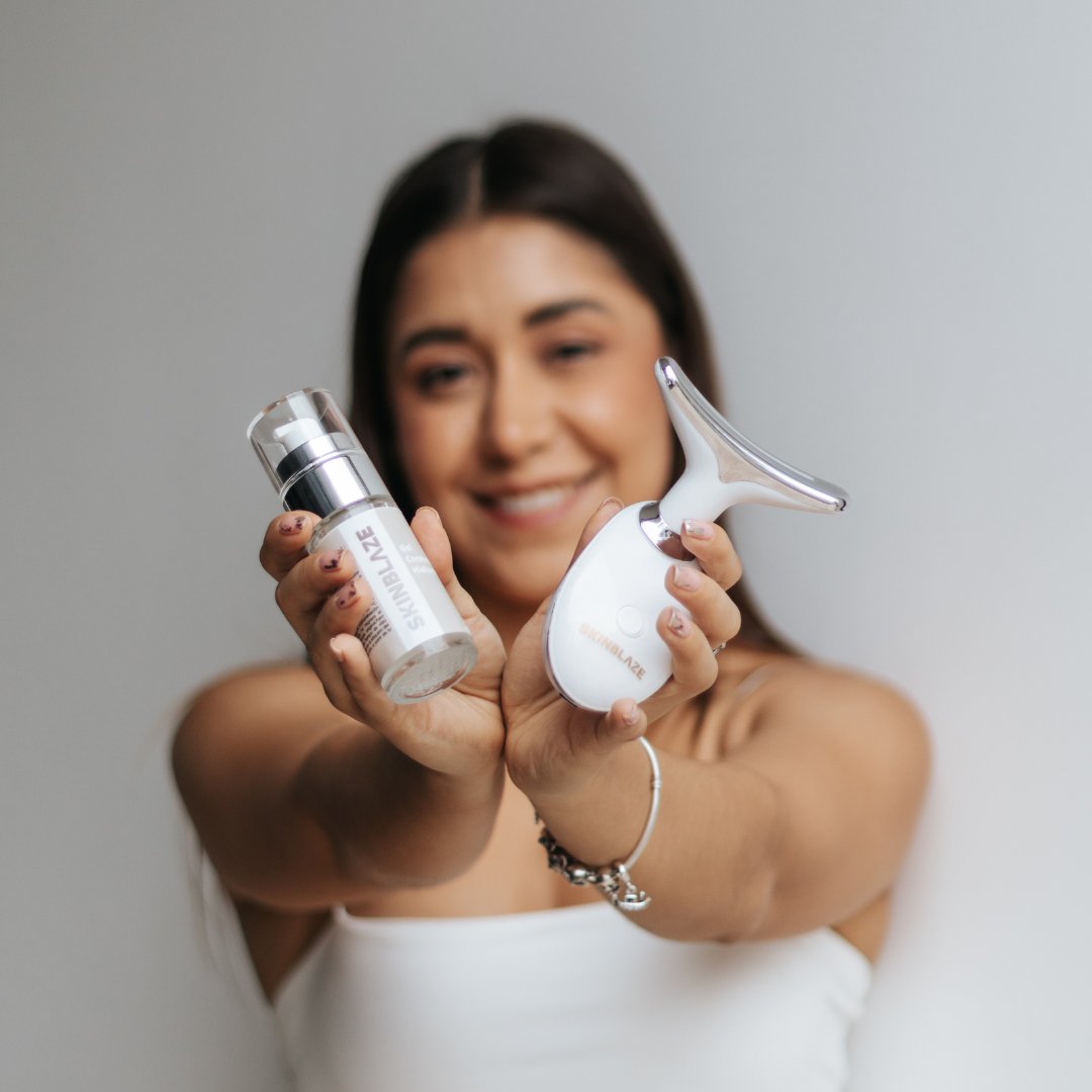 Con SkinBlaze, darle a tu piel el cuidado que se merece es más fácil que nunca. Nuestro dispositivo combina tecnología avanzada para rejuvenecer, reafirmar y revitalizar tu piel, ayudándote a mantener un rostro luminoso y lleno de vida, todos los días